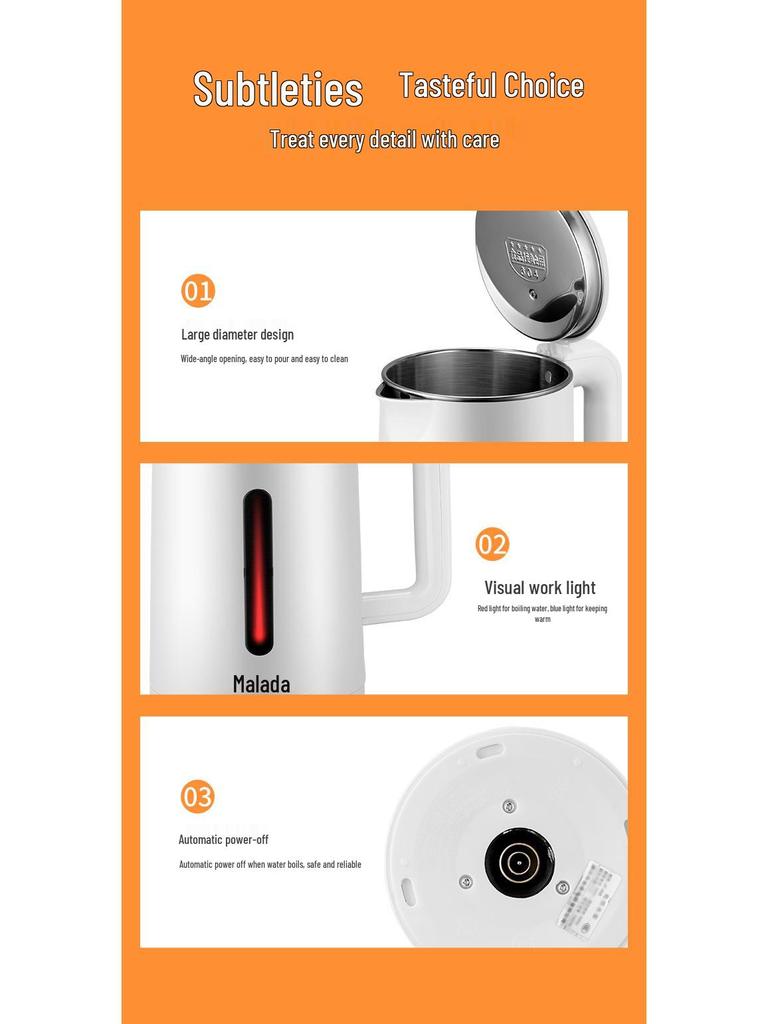 Электрический чайник из нержавеющей стали Malata с функцией автоматического отключения и поддержания тепла