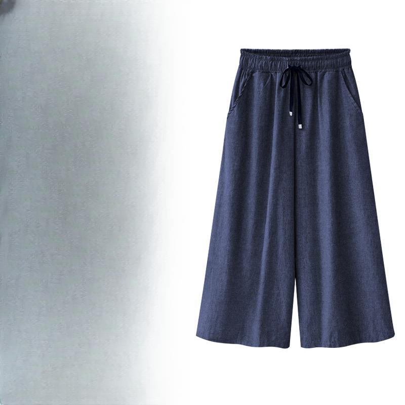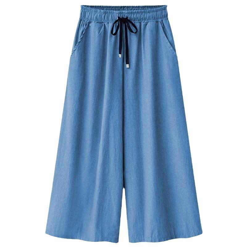 Женские летние тонкие брюки большого размера с широкими штанинами, укороченные брюки-кюлоты свободного кроя