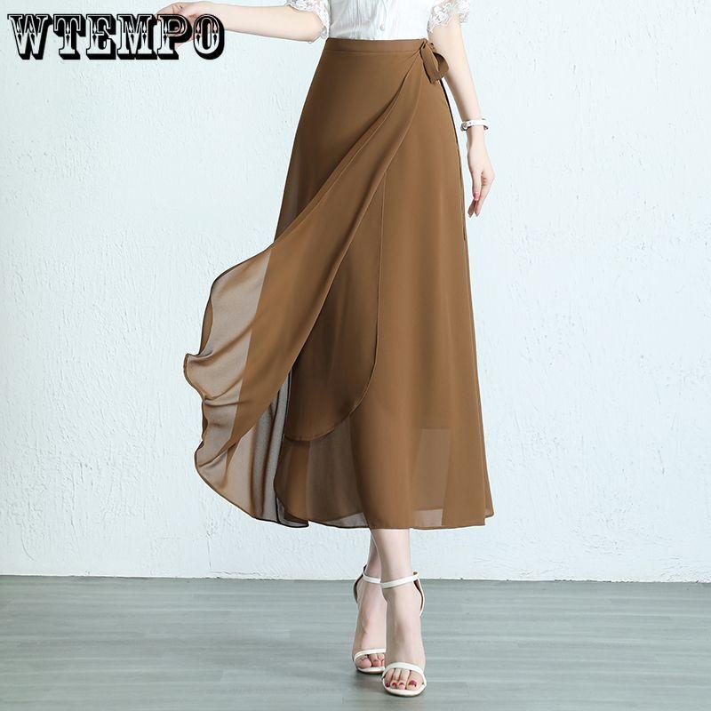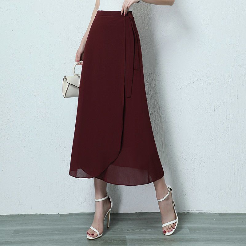 Цельное платье Новая шифоновая юбка Женская летняя тонкая юбка с высокой талией