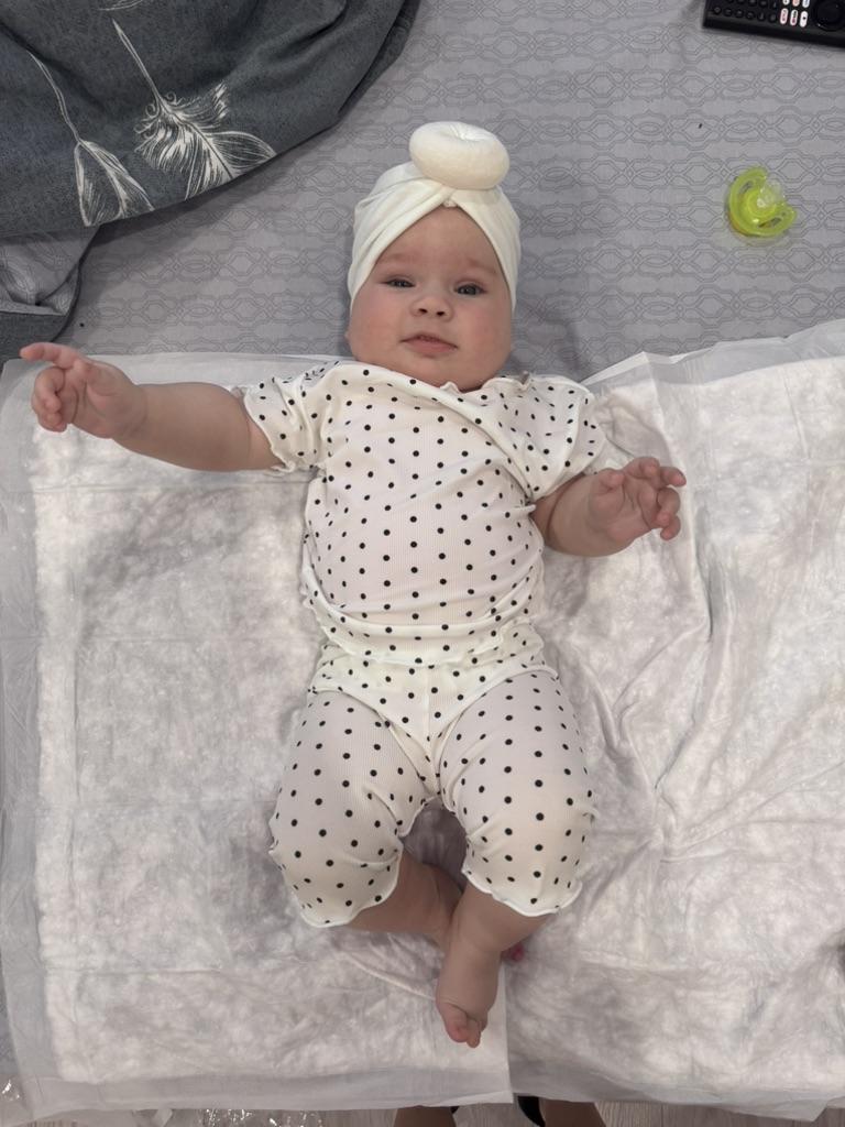Маломерит, но очень легенький и приятный к телу. Нам 5 месяцев, рост 68 , костюмчик только только