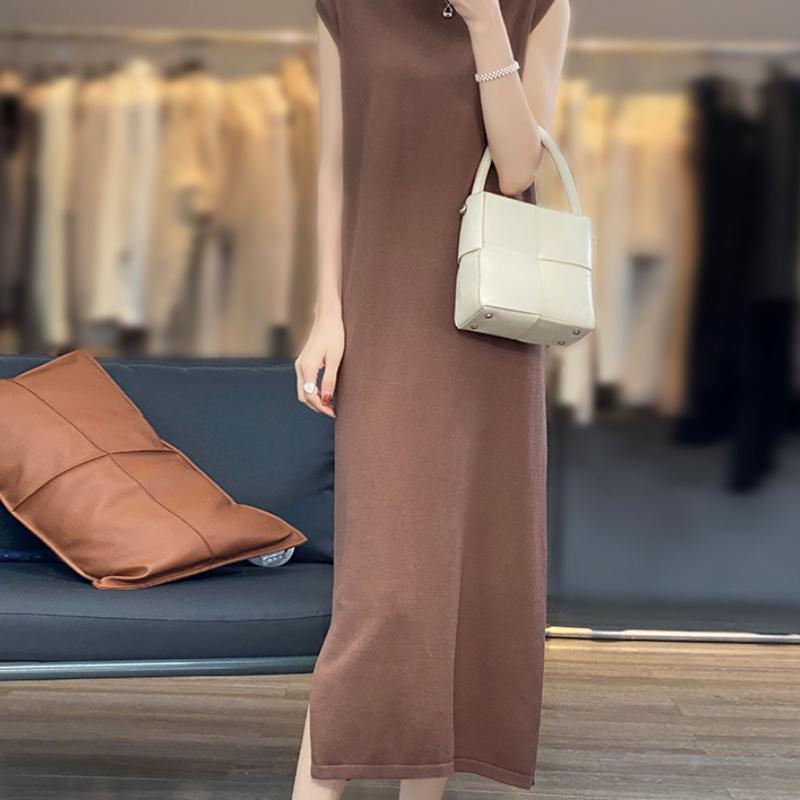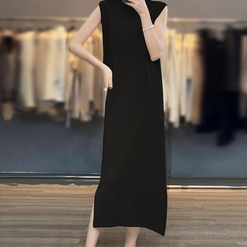 Платье-миди без рукавов из чистого хлопка для женщин на лето, с круглым вырезом, средней длины, для внутреннего слоя, с разрезом снизу, длинная юбка