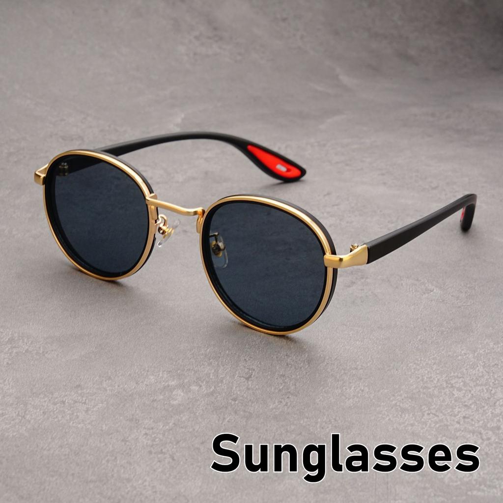 Нейтральные Новые Ретро Повседневные Круглые Солнцезащитные Очки В Золотой Оправе Модные Индивидуальные Хип-Хоп Уличные Стрельбы Вогнутые Солнцезащитные Очки