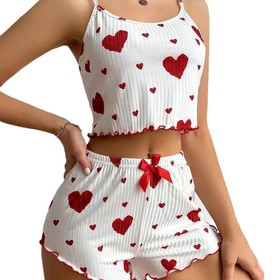 Женский пижамный комплект для сна 2 предмета: короткий топ-майка и шорты, белый, дышащий, мягкий, повседневный, с принтом "Любовь"