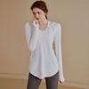 Женский осенне-весенний приталенный топ с капюшоном и длинными рукавами для тренировок, свободная фитнес-футболка с высокой талией для бега, йоги, спортзала