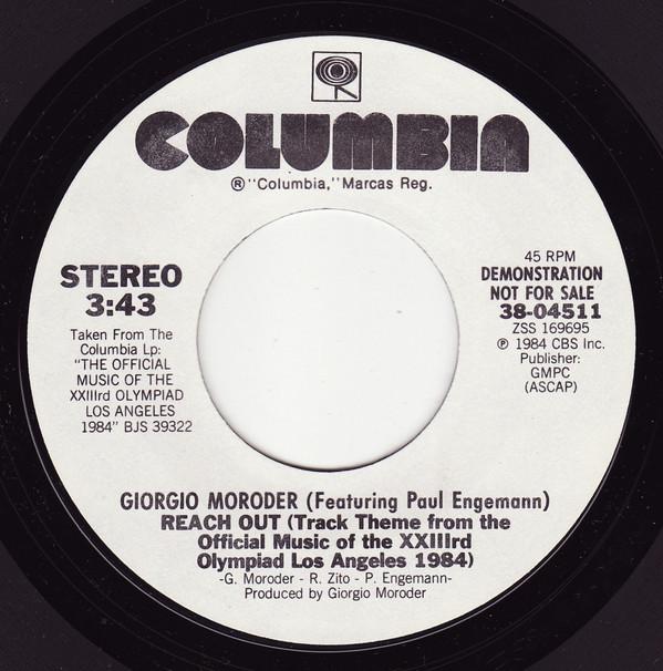 7inch Record GIORGIO MORODER, PAUL ENGEMANN - Reach Out (Track Theme From The Off 3804511 Columbia 1984 US Dance & Electronica Used