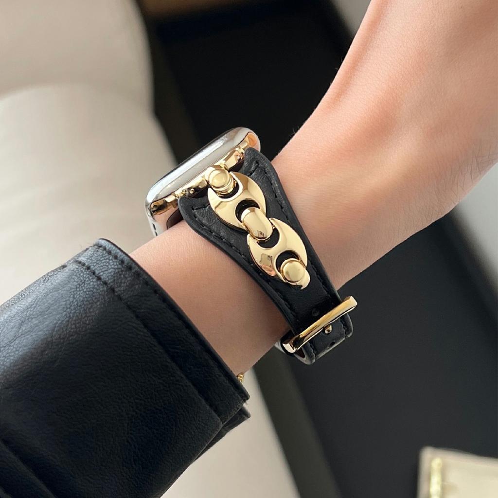 Ремешок для часов Apple Watch Series 10 Ultra 9 8 7 SE 6 5 4 3 2 1 46 мм 49 мм 45 мм 44 мм 42 мм D-образное металлическое кольцо кожаный ремешок