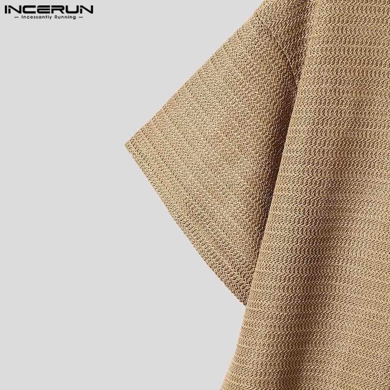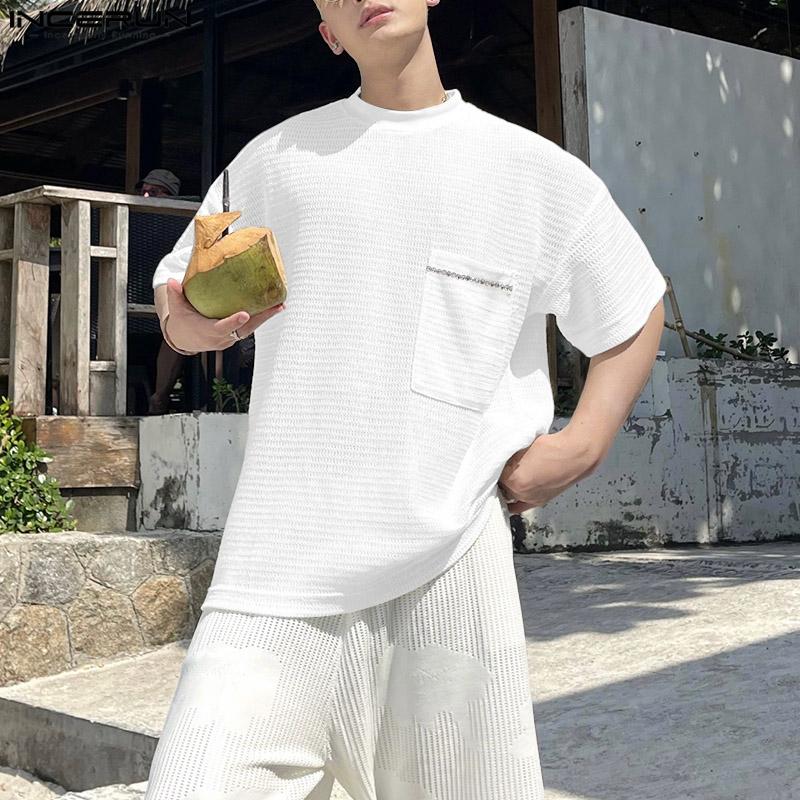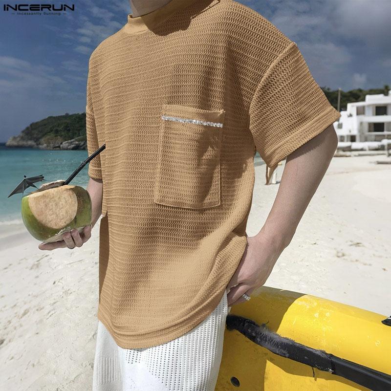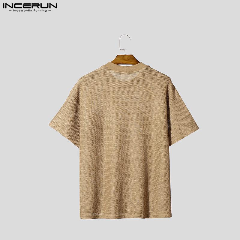 INCERUN Летние мужские футболки с коротким рукавом, полые, просвечивающие, повседневные, свободные, базовые