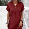 Женский однотонный пуловер с V-образным вырезом, повседневное платье на пуговицах — купить товар онлайн с бесплатной доставкой по всему миру!