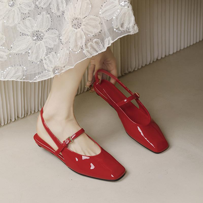 Сяосянфэн Баотоу Мэри Джейн Сандалии Женские Повседневные Универсальные Однословная Пряжка Сзади Пустая Плоская Подошва Темперамент Одинарные Туфли