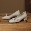 Мягкую кожу можно наступать~ бант светлый рот туфли-лодочки новые толстый каблук квадратный носок туфли бабушки средний каблук