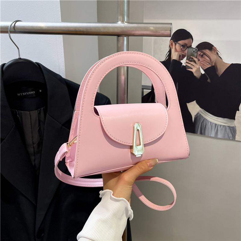 2025 лето новая полукруглая сумка женская однотонная ретро сумка с замком модная с иностранным ощущением повседневная сумка-мессенджер