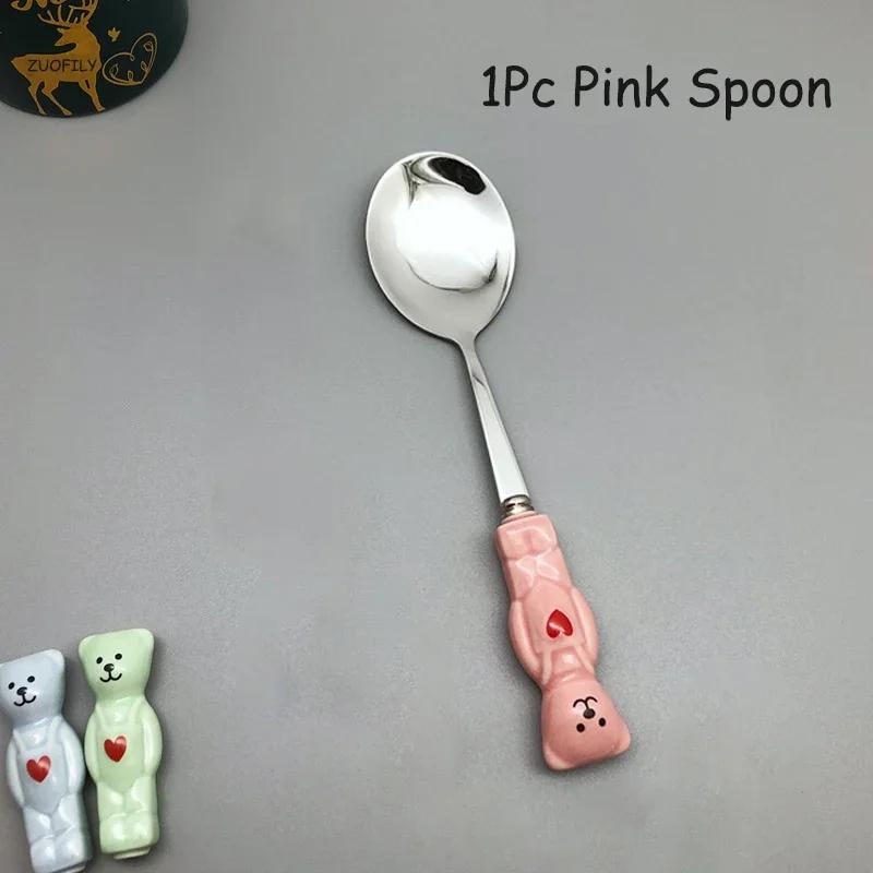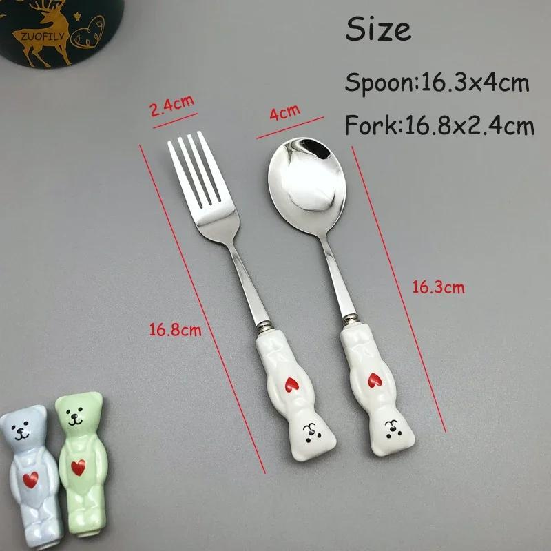 Новые милые ложка-вилка в виде медвежонка, керамические десертные ложки для молока, фруктов, салата, мультяшные столовые приборы, детские столовые приборы, посуда, школьный пикник, столовая посуда