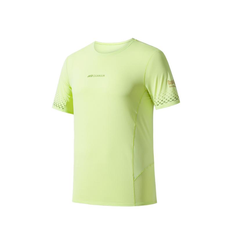 Anta Удобная простая спортивная влагоотводящая универсальная круглая горловина облегающая футболка с коротким рукавом мужская футболка желто-зеленого цвета 152520113-4