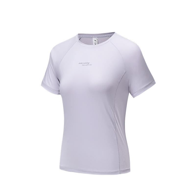 Anta Удобная Простая Легкая Универсальная Футболка-пуловер с круглым вырезом и коротким рукавом с надписью Женские топы Светло-пурпурный Серый 162535106-3