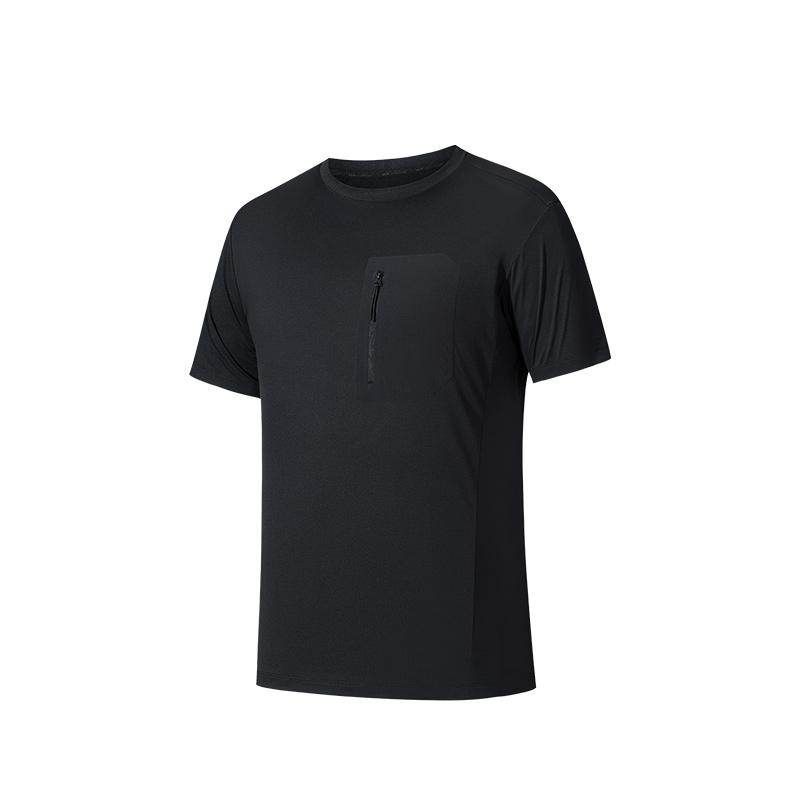 Anta Удобная простая универсальная однотонная футболка с круглым вырезом, влагоотводящая, с коротким рукавом, мужские топы, базовый черный цвет 152530126-3
