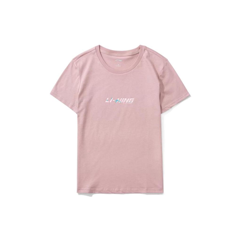 Женская футболка с круглым вырезом и короткими рукавами с принтом логотипа Li Ning, топы, ледяной фиолетовый AHSR692-4