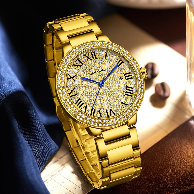 KIMSDUN Мужские часы Элегантные Роскошные Полностью Бриллиантовые Кварцевые Часы для Мужчин Водонепроницаемые Серебристые Мужские Наручные Часы