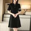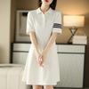 Платье-поло облегающего кроя средней длины для женщин на лето, новая модная модель в стиле колор-блок, универсальное, с широкой юбкой-слингом, юбка из хлопковой нити