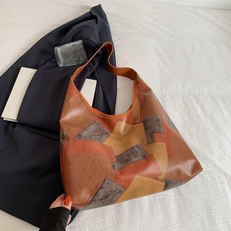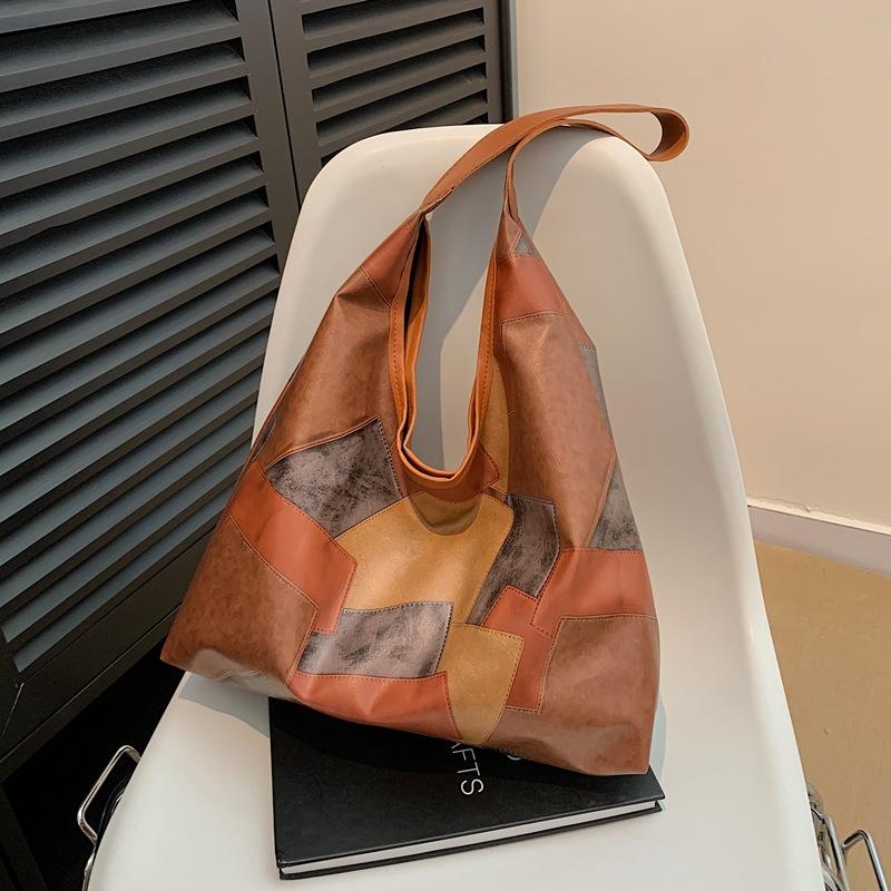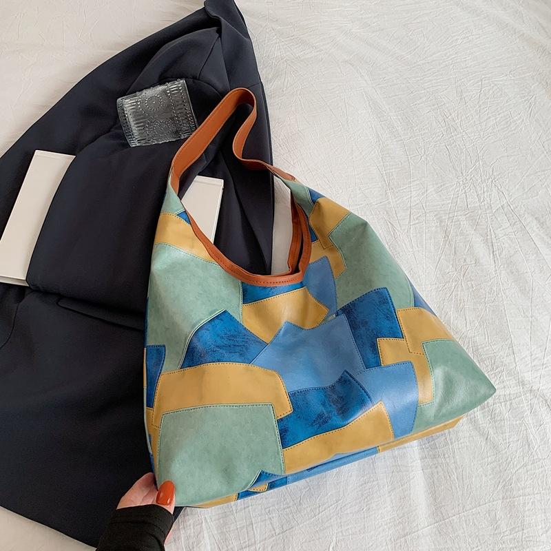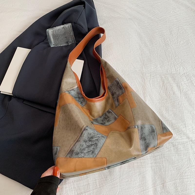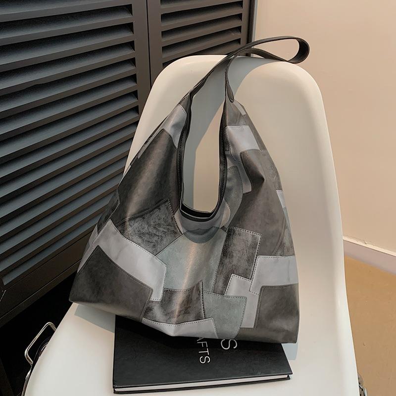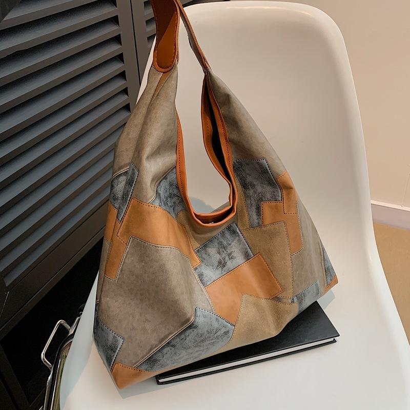 Повседневная сумка-тоут большой вместимости с комбинированными вставками, женская, лето 2025, новая, простая, зарубежная, на плечо, текстурная, сумка-ведро
