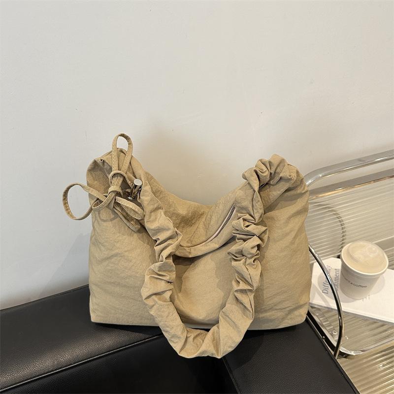 Вместительная облачная плиссированная сумка на плечо с кулиской, однотонная, в простом ленивом стиле, универсальная сумка-мессенджер