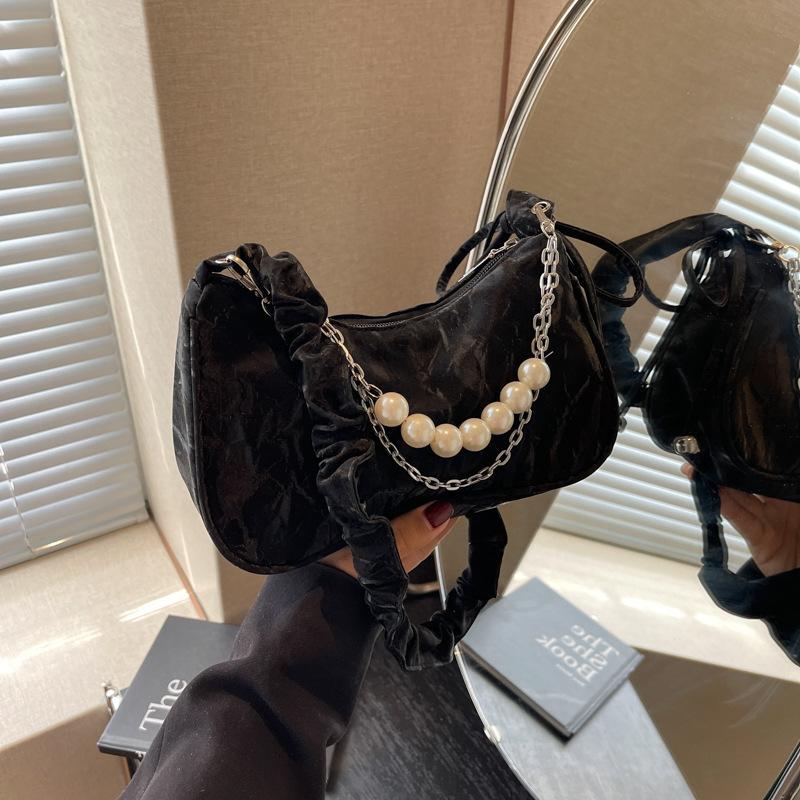 Сумка-багет с высокой стоимостью, плиссированная сумка под мышкой, женская, лето 2025, новая сумка через плечо, модная сумка-багет с жемчужной цепочкой — купить товар онлайн с бесплатной доставкой по всему миру!