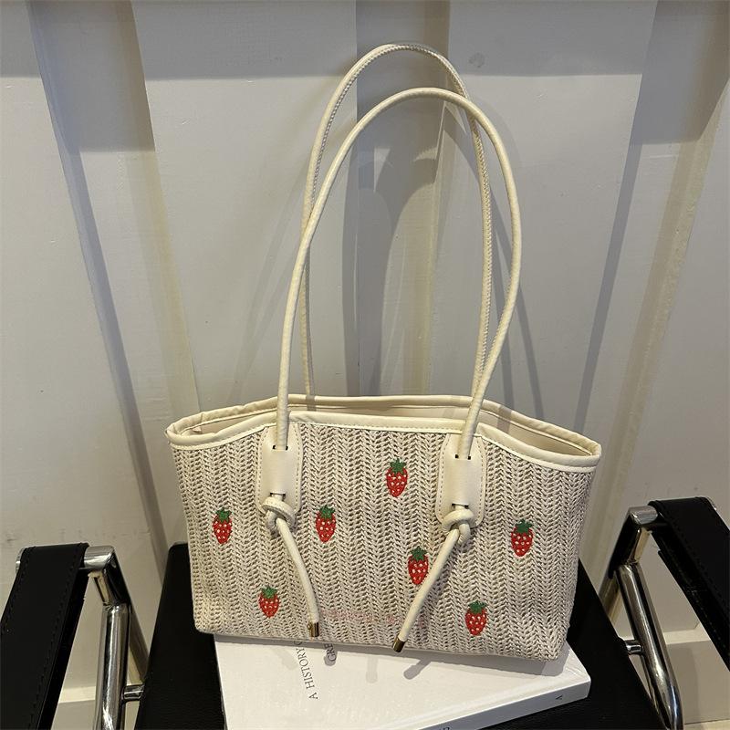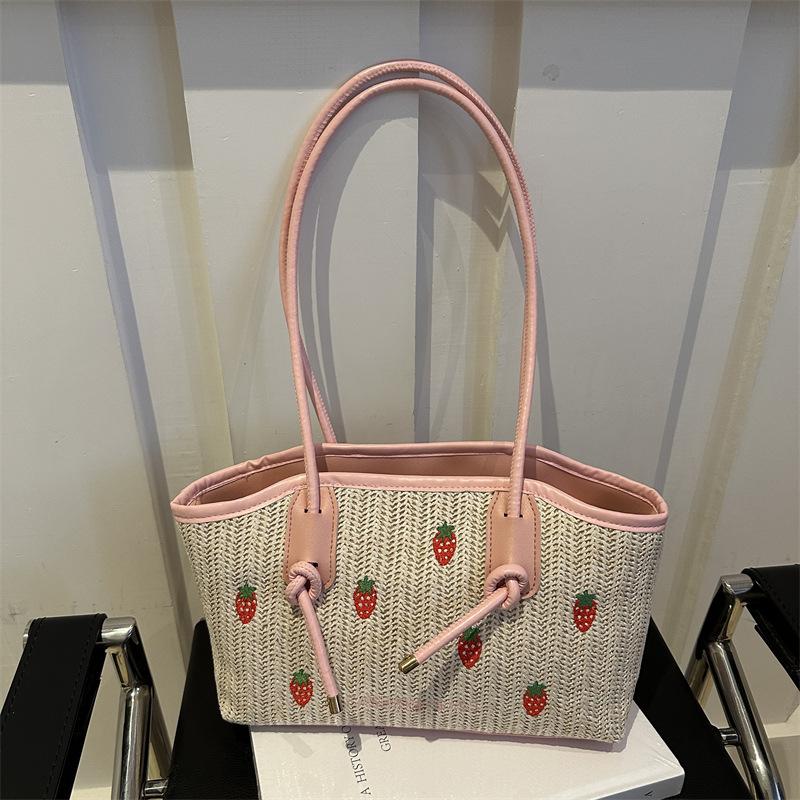 Летняя дорожная плетеная сумка-тоут женская 2025 новая пасторальный стиль для отпуска сумка-тоут с клубничной вышивкой