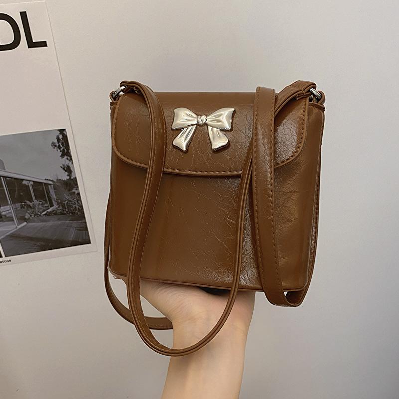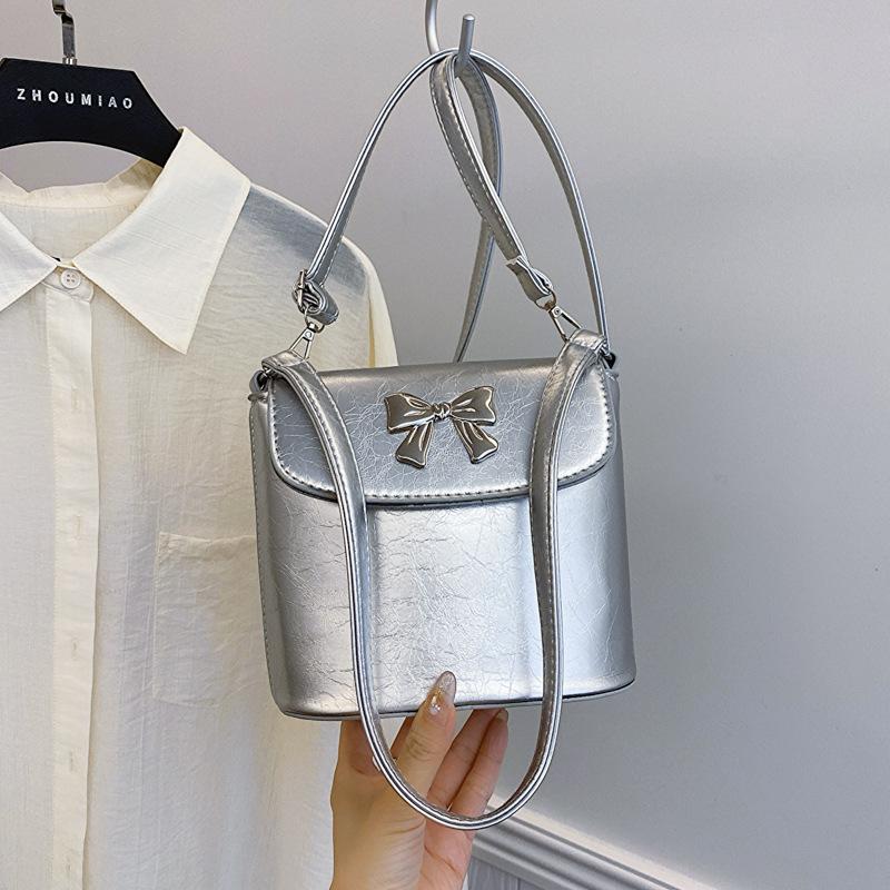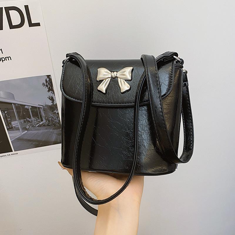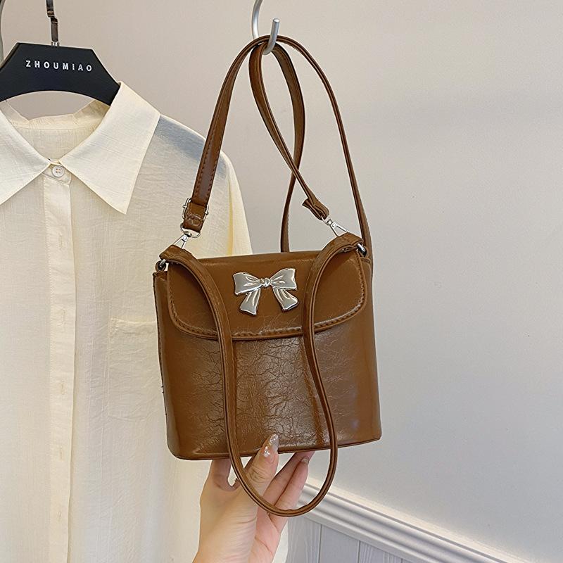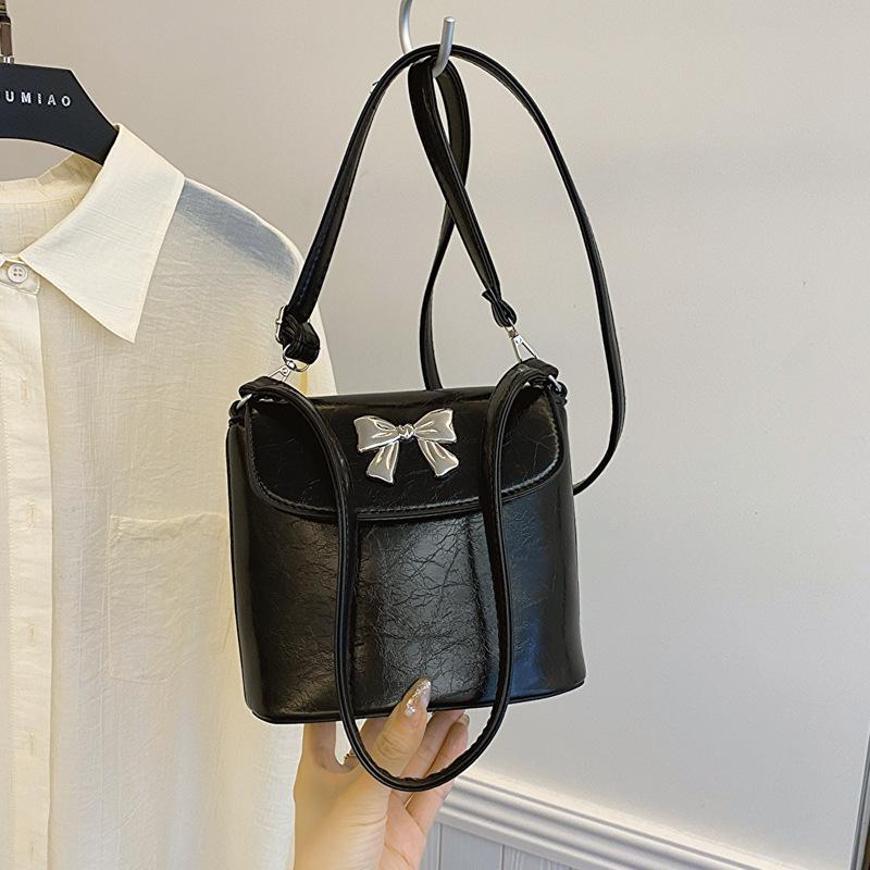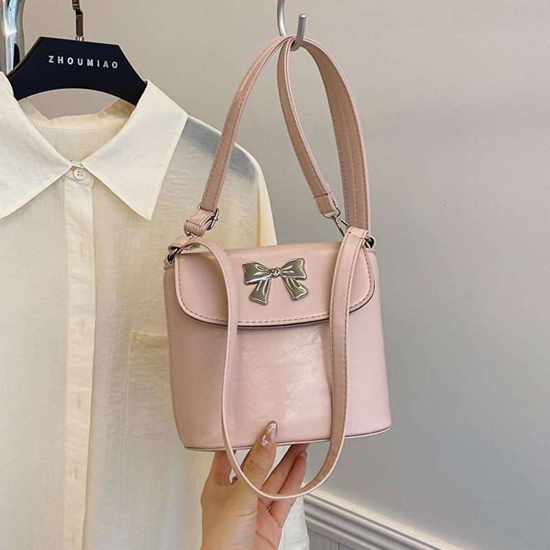2025 новая летняя маленькая свежая сумка-ведро сумка на плечо через плечо в стиле Мори-герл однотонная сумка-подмышка с бантом