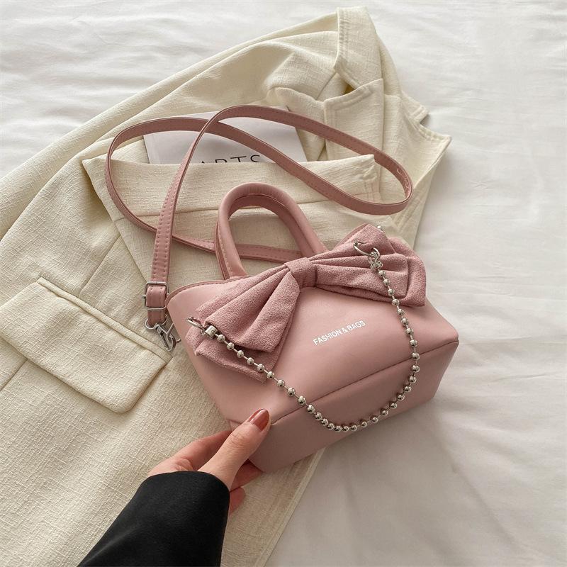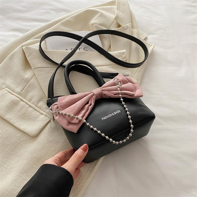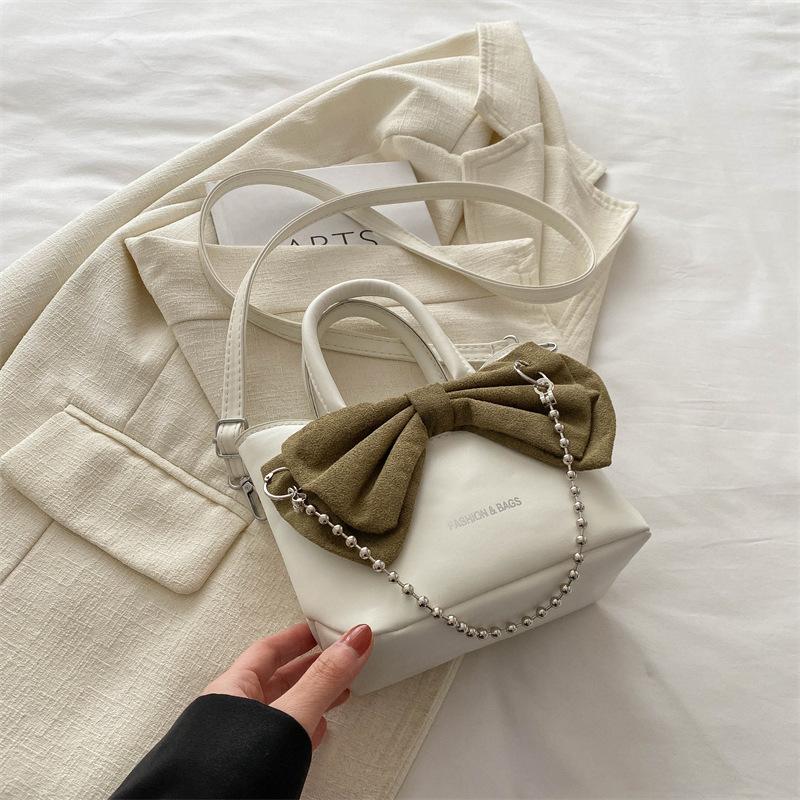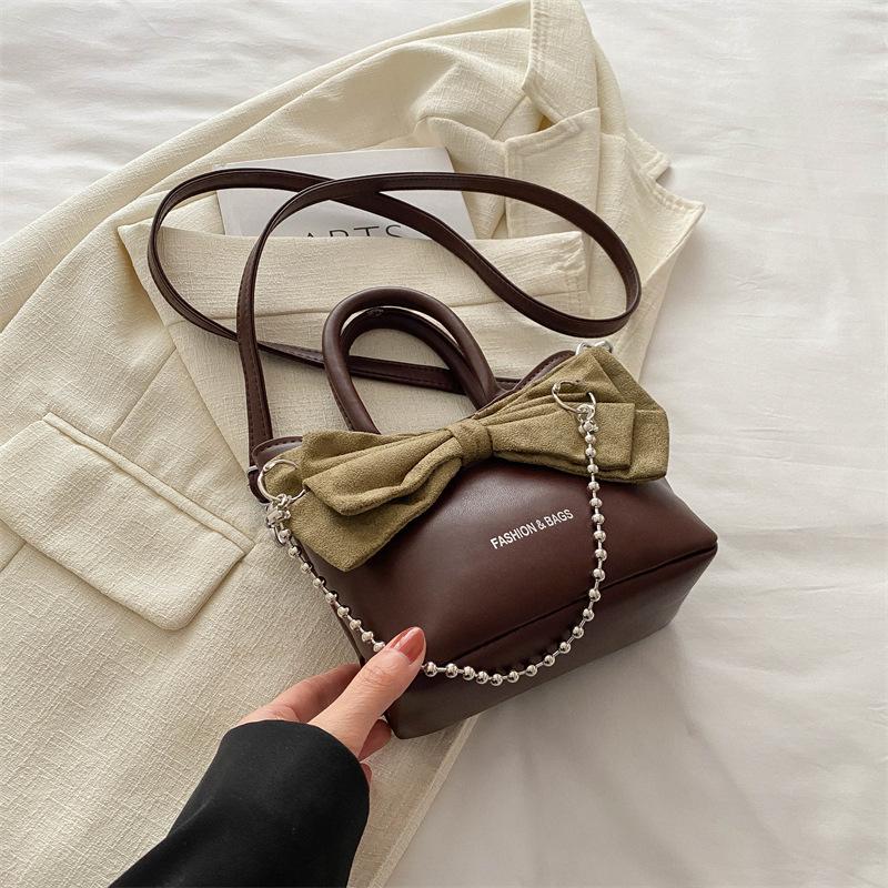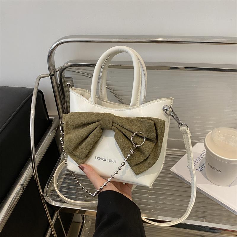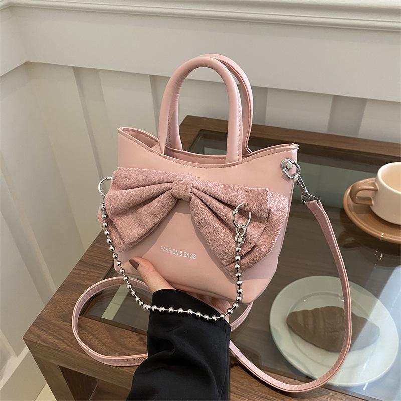 Женская простая текстурная сумка через плечо женская модная сумка-тоут с цепочкой-бантом 2025 весенняя новая сумка-ведро
