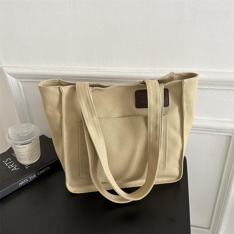 2025 холщовая новая большая вместимость повседневная простая мода простая портативная однотонная сумка-тоут на плечо женская