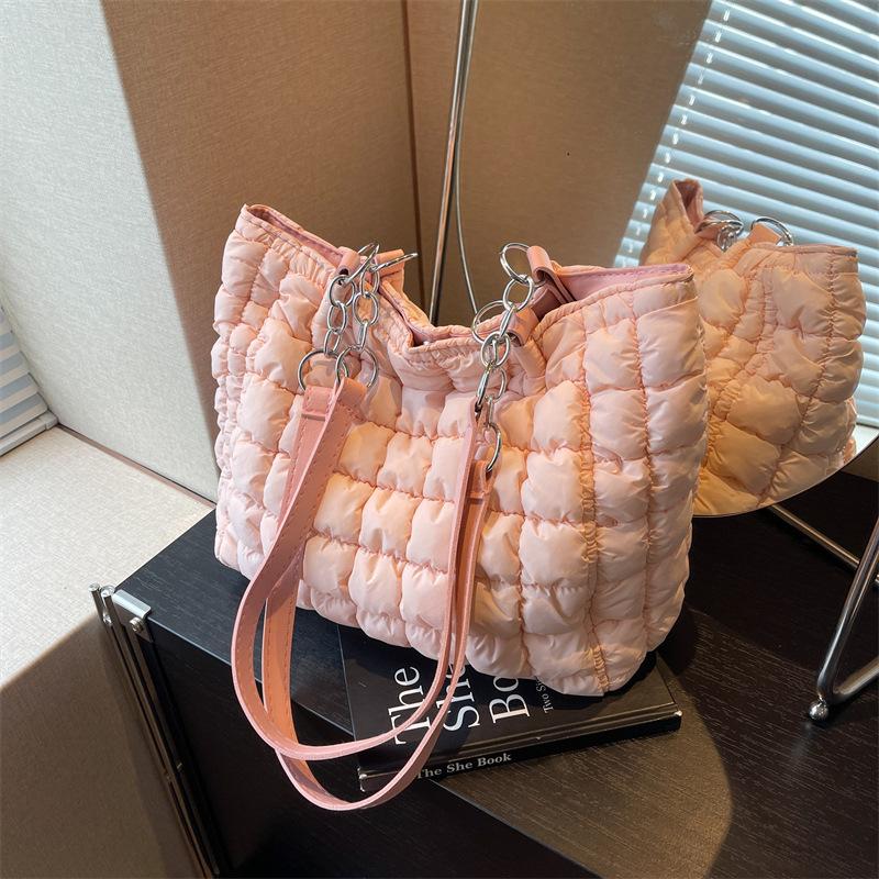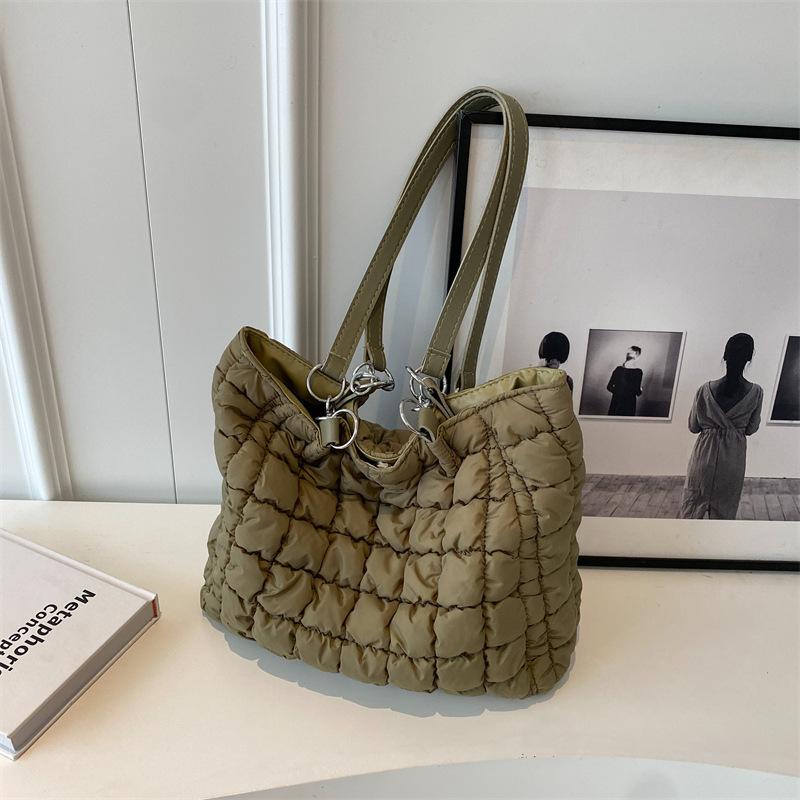 Сумка-облако из ромбовидной вышивальной нити, сумка для пуховика из хлопка, повседневная плиссированная сумка-тоут большой вместимости для переноски на плече, женская сумка