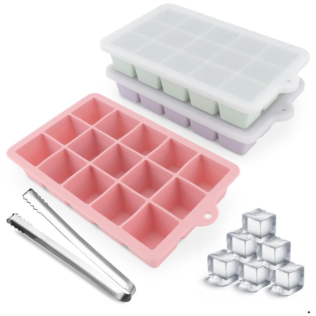 🚢【Безопасный пищевой материал】Набор из 3 лотков для льда с щипцами для льда, 45 кубиков льда. Изготовлены из более прочного силикона и полипропилена, лотки для льда нетоксичны, они пищевые и не содержат БФА, более долговечные и безопасные.. Суповые кубики выдерживают длительное хранение при низких температурах -40ºC~240ºC. Наши формы для льда — лучший выбор, чем те дешевые одноразовые формы.