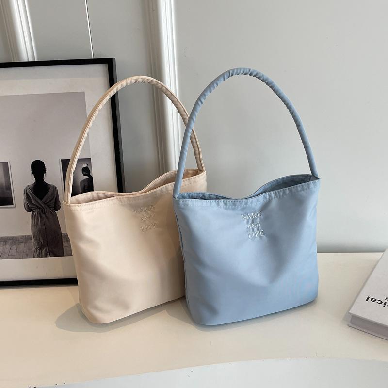 Портативная нейлоновая сумка женская лето 2025 новая трендовая вышитая сумка-подмышка универсальная наплечная сумка-ведро