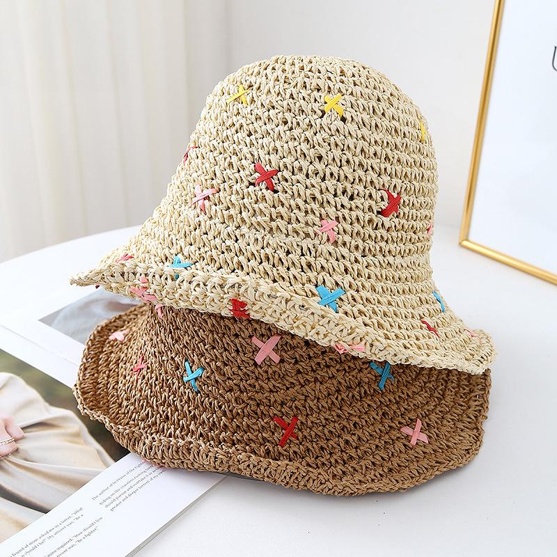 Милая цветная шляпа из плетеной соломы Женская летняя приморская пляжная шляпа с ажурной вязкой, защищающая от солнца, для отпуска, с большими полями
