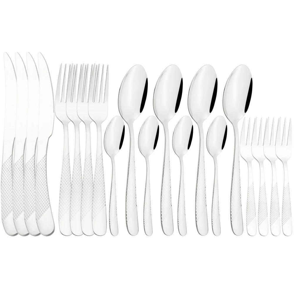 Набор столовой посуды в западном стиле, 20 предметов, набор столовых приборов из нержавеющей стали, нож, вилка для торта, ложка, набор столовой посуды, серебристый набор столовых приборов, набор столового серебра