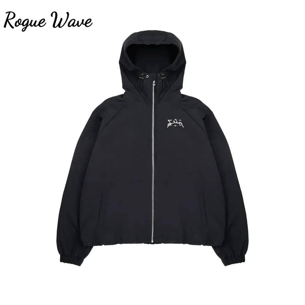 RogueWave Streetwear Y2k Олимпийка Ретро Классический Принт Ветровка на Молнии Толстовка с Капюшоном Мужская Женская Мода Харадзюку Куртка-Бомбер Топы