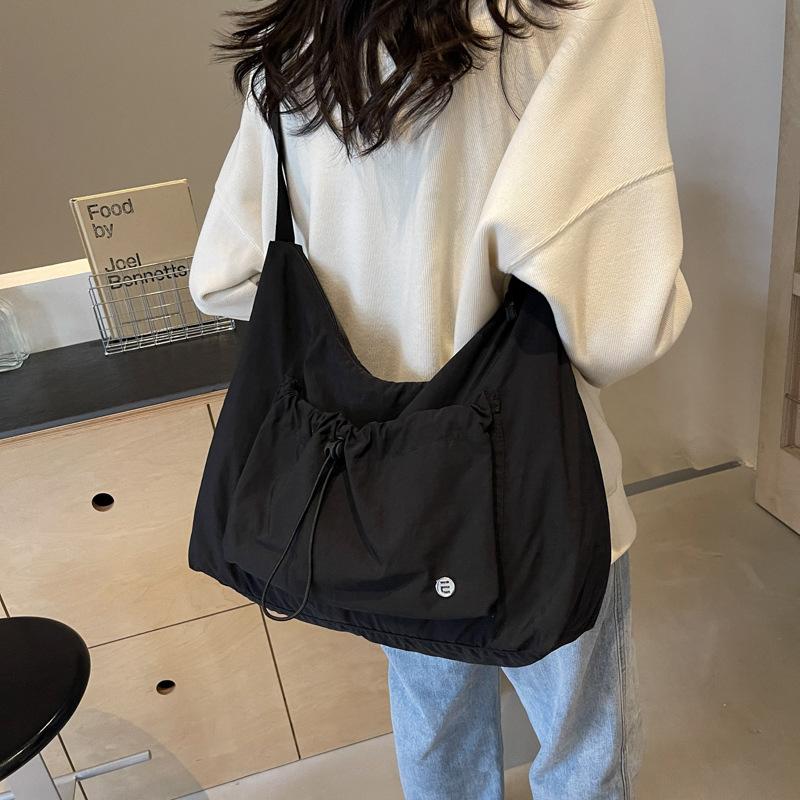 Водонепроницаемая нейлоновая сумка Женская студенческая сумка-мессенджер для занятий Большая вместительная тканевая сумка Легкая наплечная сумка Однотонная сумка