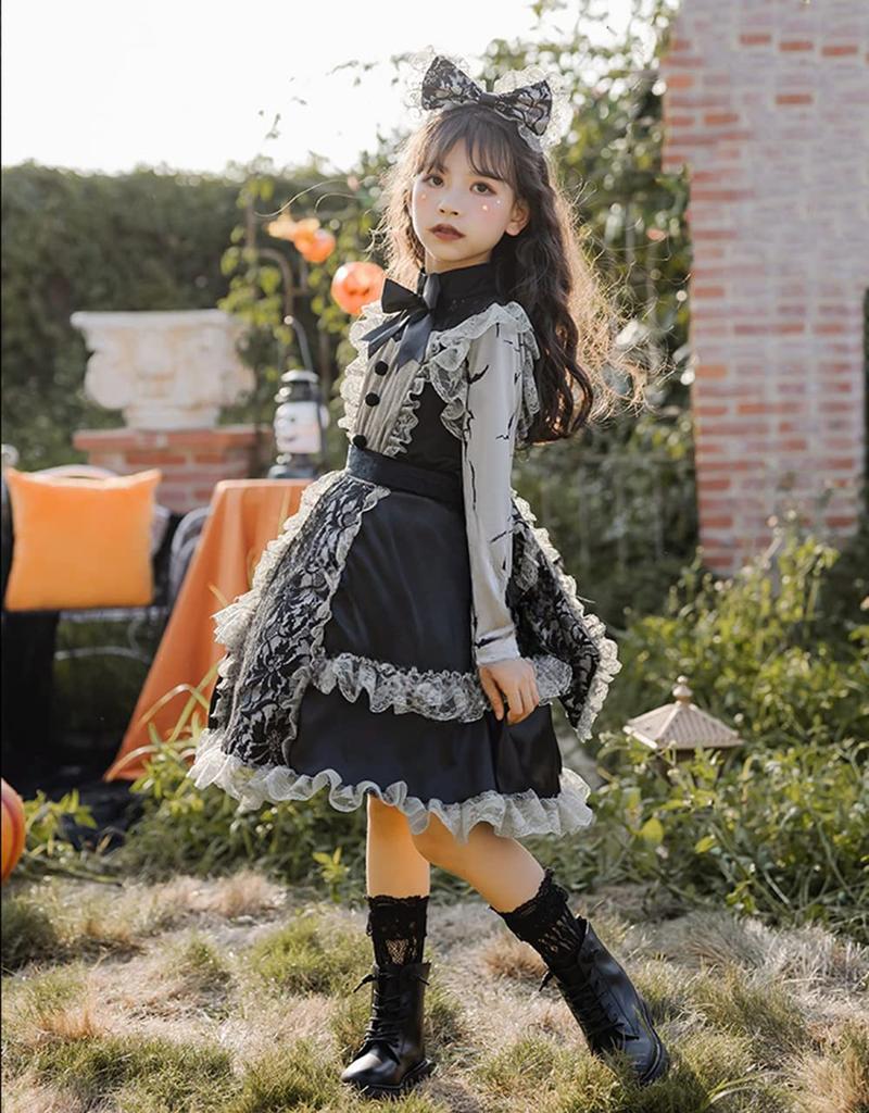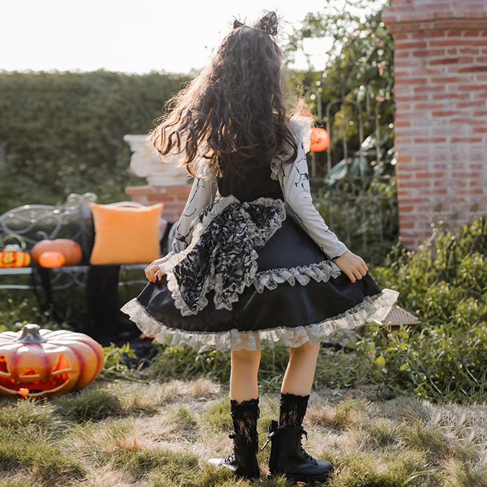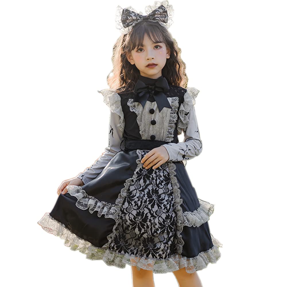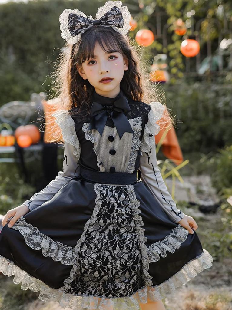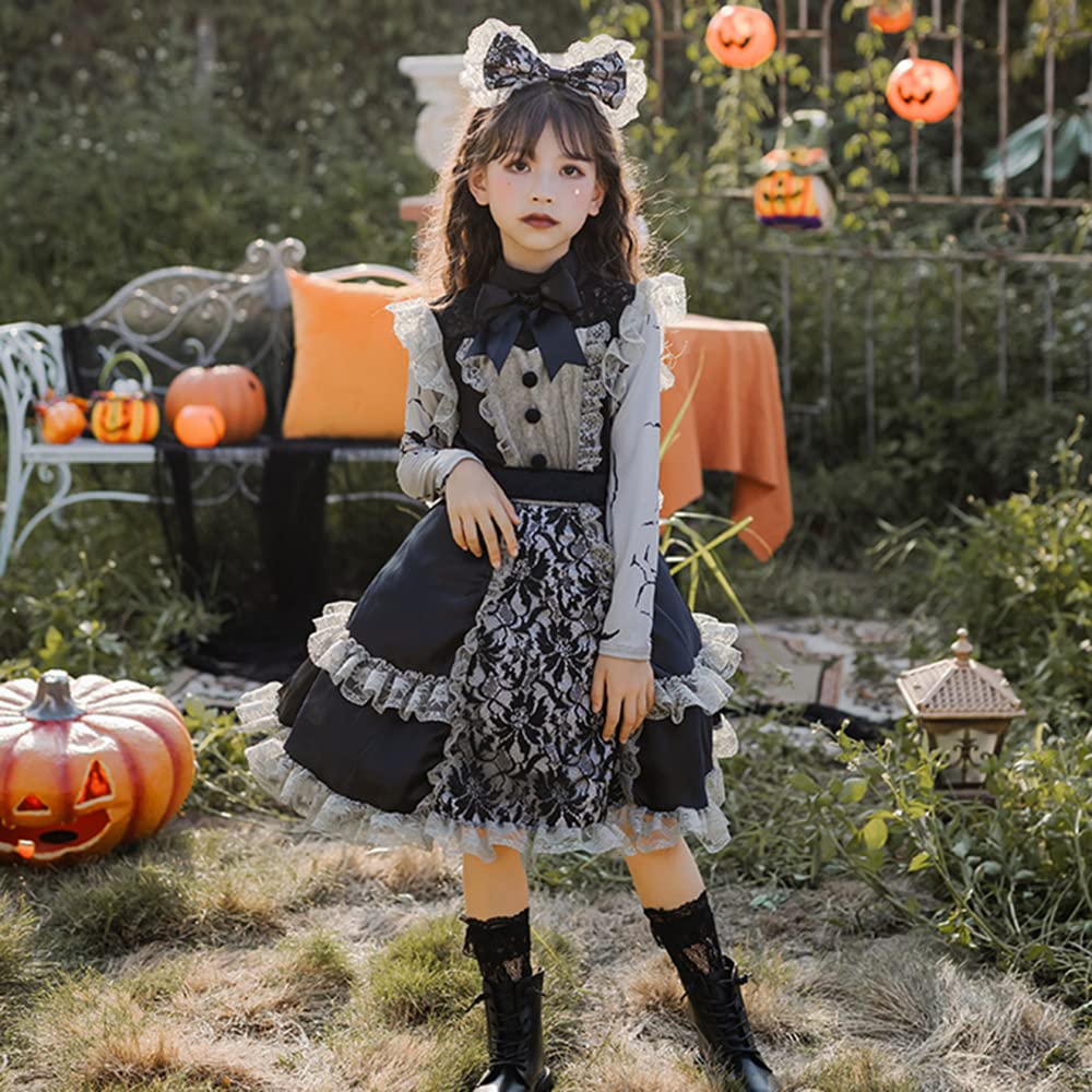 [Лонгпен] Хэллоуин Косплей для детей, Ведьма, Ключи, Наряд горничной, Цельный, Костюм для девочки, Маскарадный костюм, Платье зомби, Дьявол, Черный, Королева, Невеста, 4