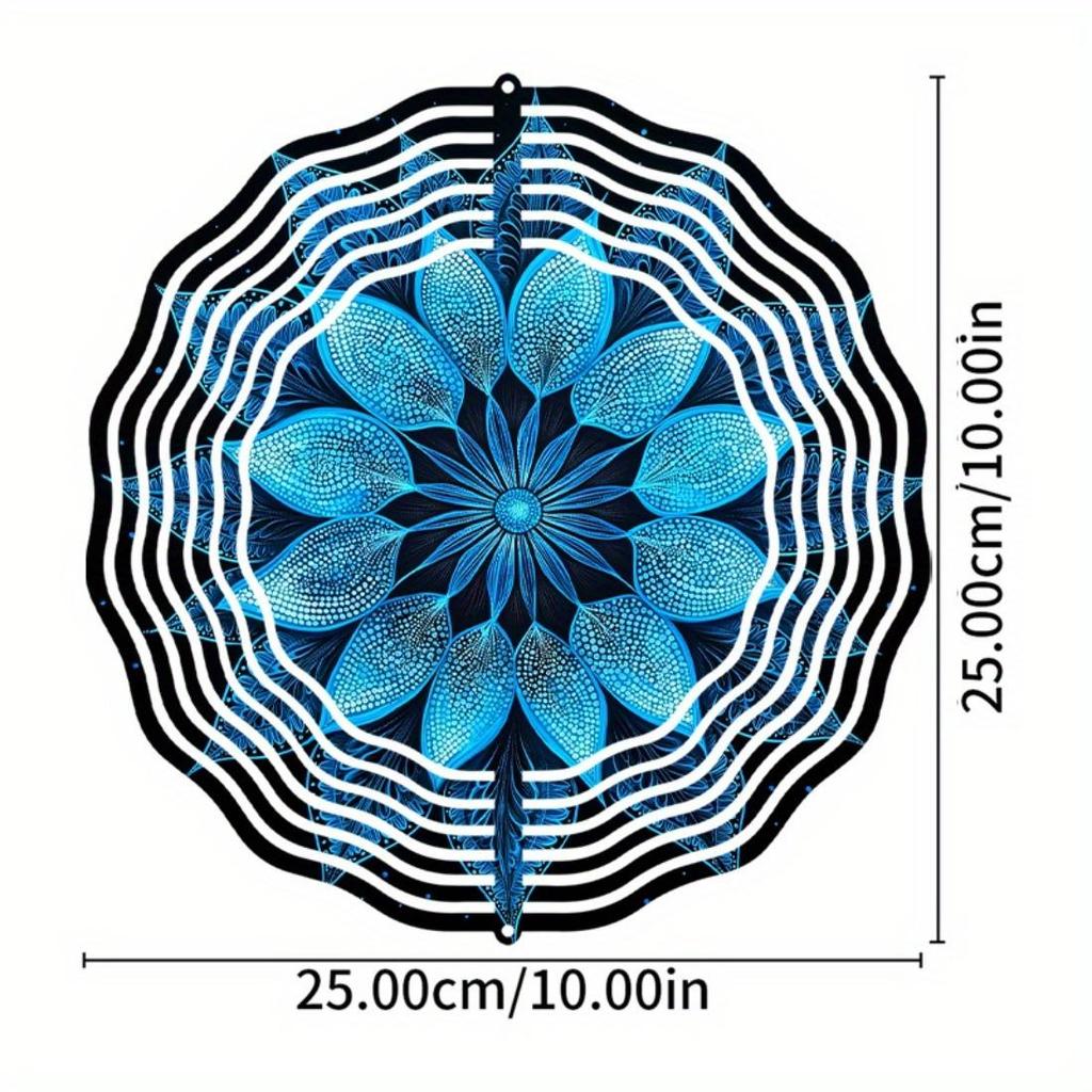25,4 см Металлический Колокольчик Ветра Мандала Цветок - Прочный Подвесной Спиннер с Сине-Золотым Дизайном для Декора Сада и Патио в Помещении/На Открытом Воздухе