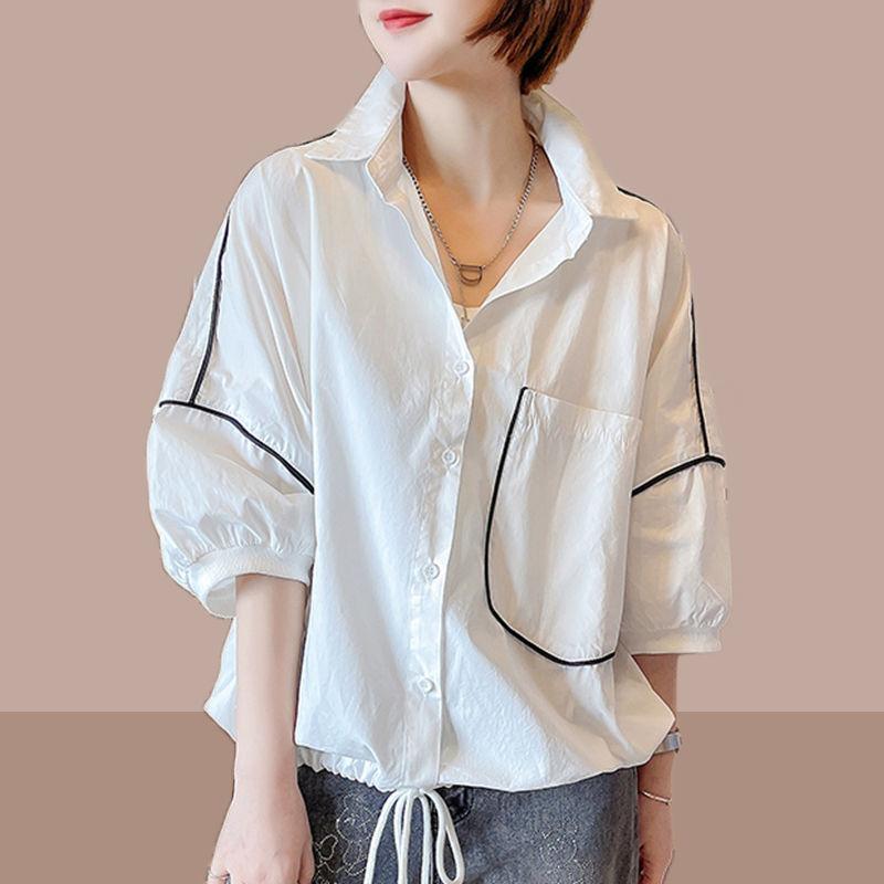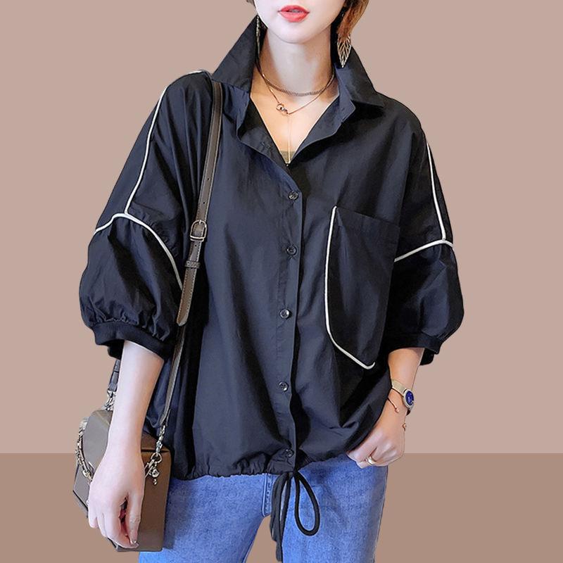 Женская свободная рубашка большого размера с воротником-стойкой и дышащими рукавами до локтя