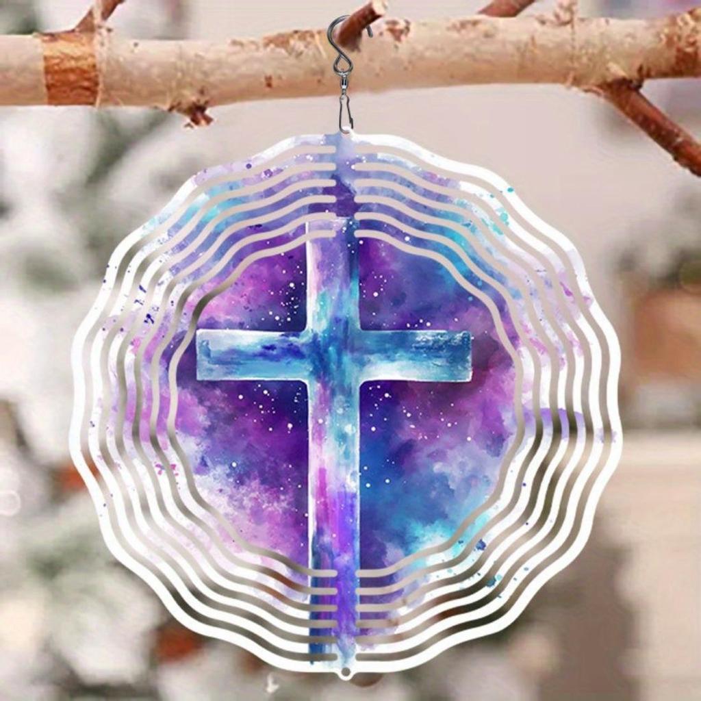 1 шт. Мандала с узором «Фиолетовая фантазия», колокольчик ветра - Прочный металл, космический дизайн с вихрями синих и фиолетовых оттенков, идеально подходит для сада