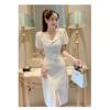 Новое клубное платье в пол с глубоким V-образным вырезом и низким декольте, клубное, клубное, клубное, сексуальное вечернее платье с рукавами-лепестками лотоса