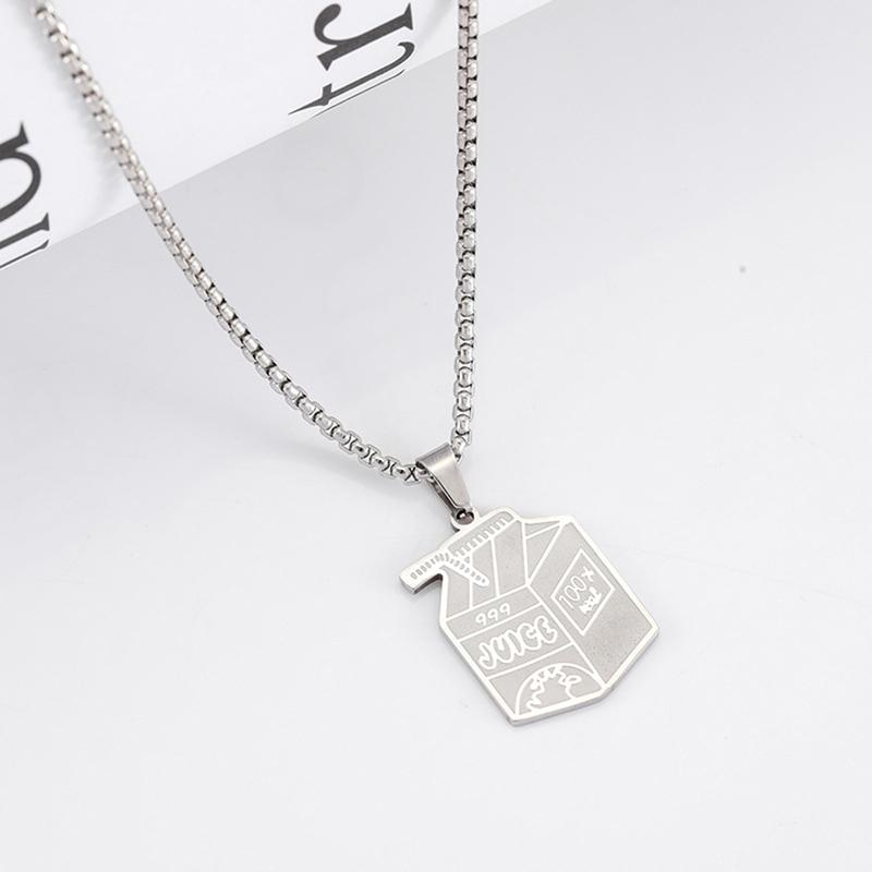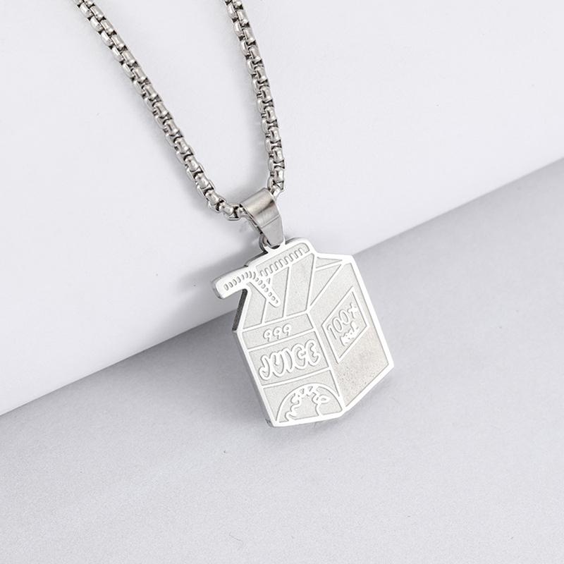 Изысканное ожерелье из нержавеющей стали с подвеской в виде коробки сока, индивидуальное ожерелье в стиле хип-хоп, аксессуары для толстовки с капюшоном, ювелирные изделия для пар