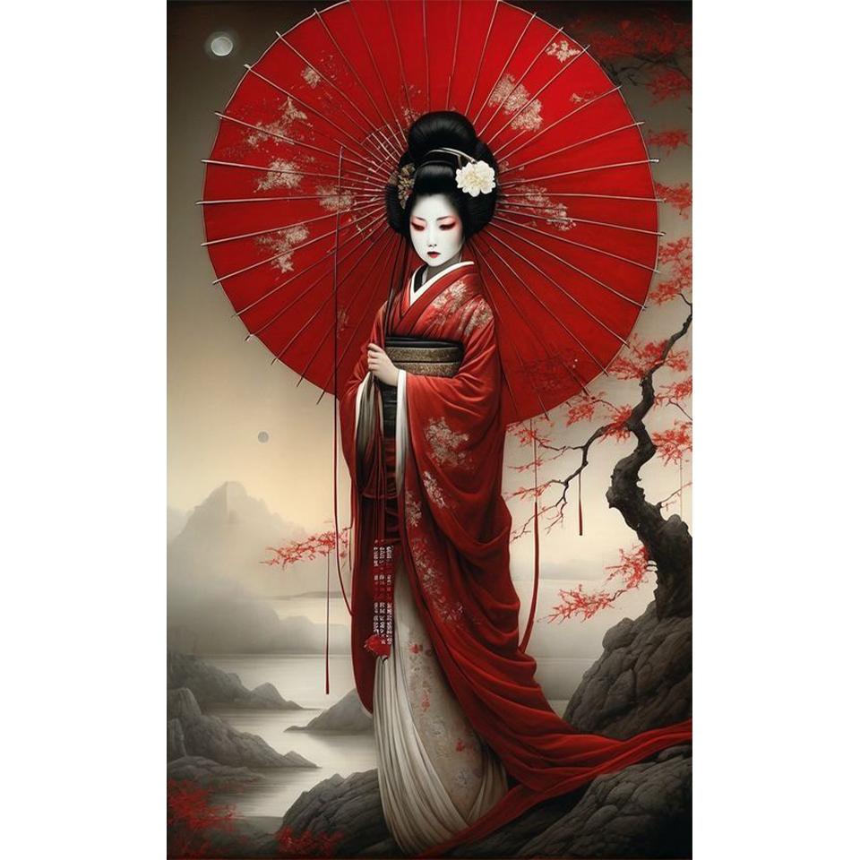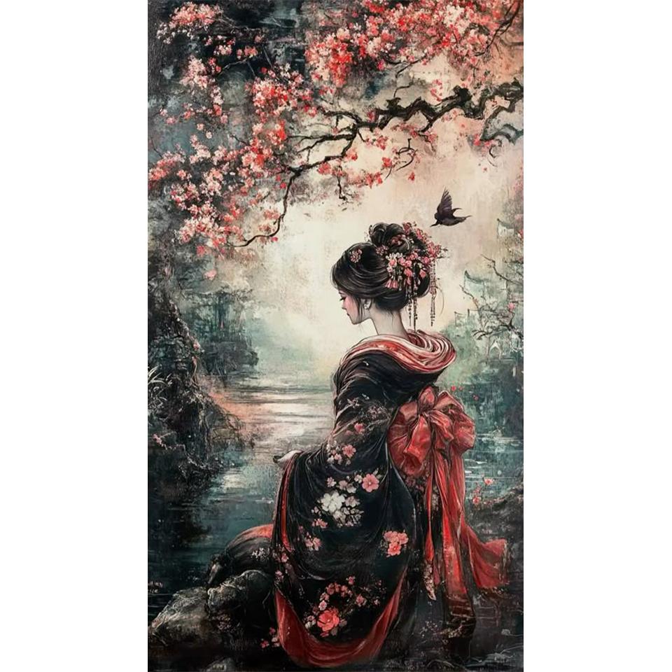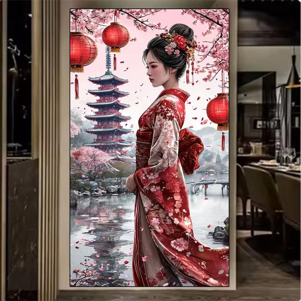Пейзаж павильона сакуры и японские женщины Сделай сам Полная алмазная декоративная живопись Алмазная мозаика Набор для вышивания крестом