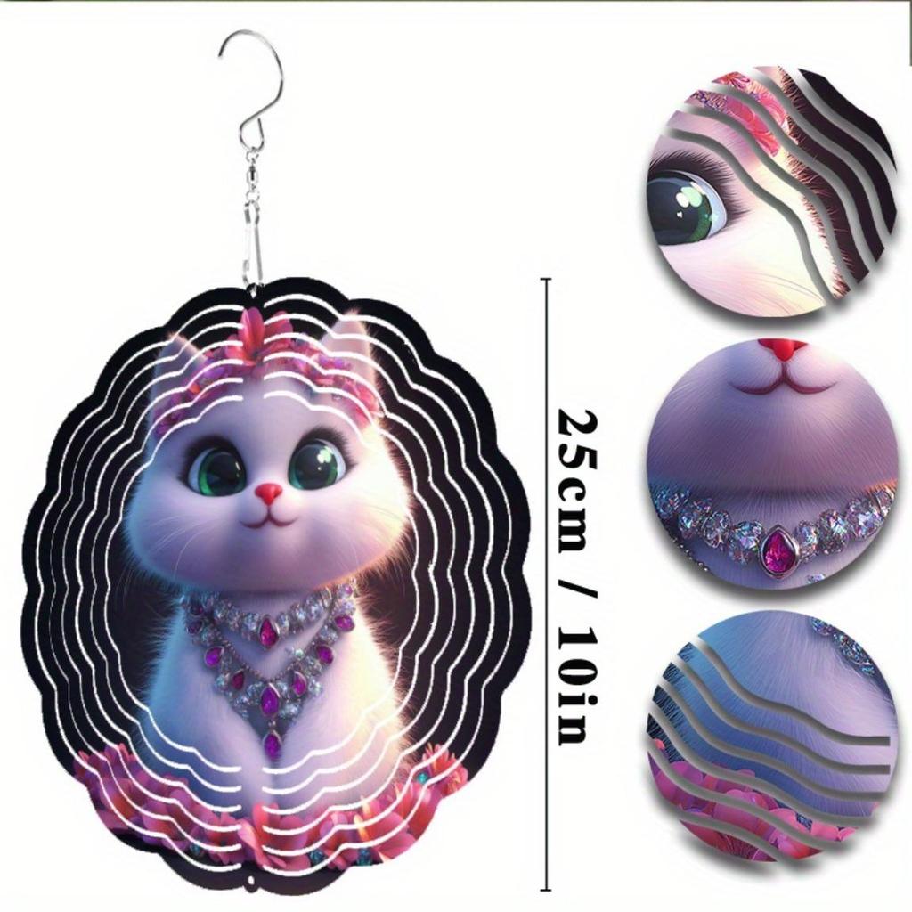 Металлический ветряной спиннер 10 дюймов с дизайном кошки и розовыми драгоценностями, вращающийся на 360° крюк для украшения балкона, сада, газона на открытом воздухе, весна, лето, осень