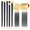 Черный золотой корейский столовый набор 15-20 предметов роскошный набор столовых приборов из нержавеющей стали столовая посуда нож вилка ложка палочки для еды набор столовых приборов
