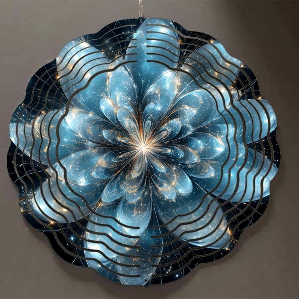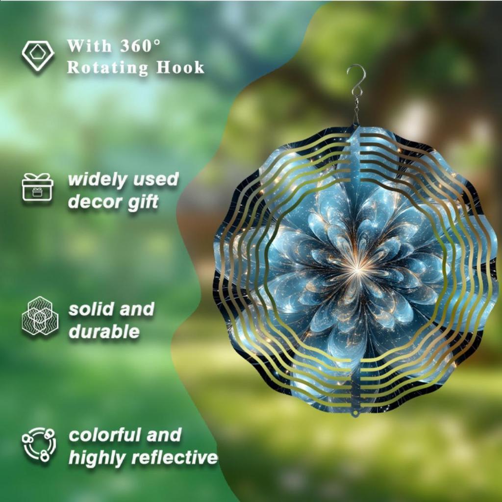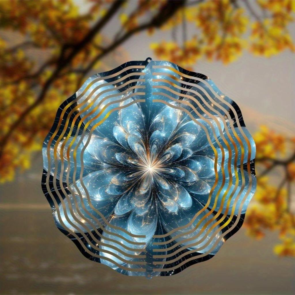 10-дюймовый подвесной ветряной спиннер с очаровательным цветочным дизайном – яркий синий и бирюзовый художественный ветряной колокольчик с крючком 360°