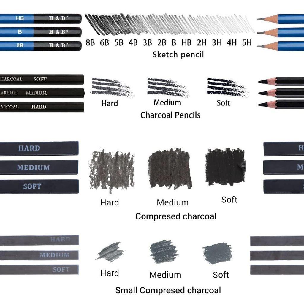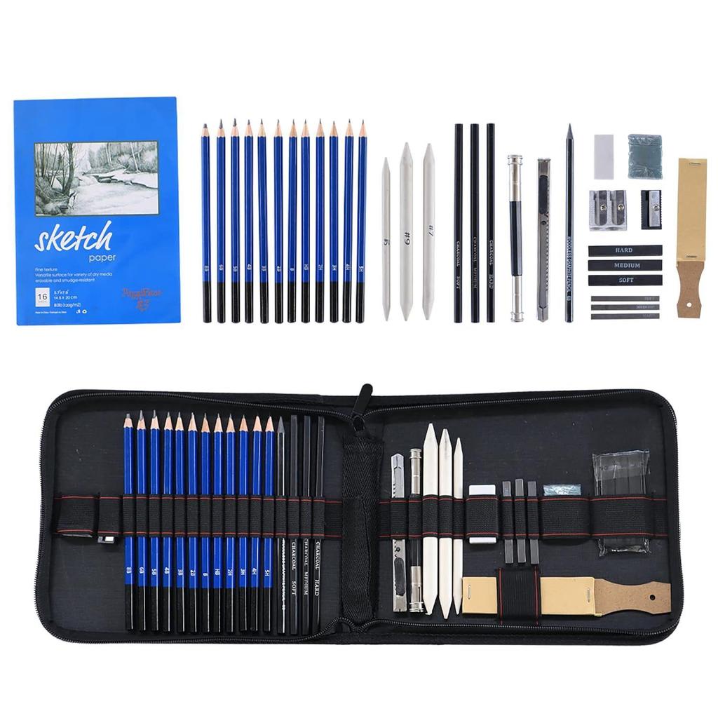 5 штук Профессиональные карандаши для рисования и набор для эскизов Полный набор для искусства для начинающих и профессионалов с графитом, углем, инструментами для растушевки и многим другим