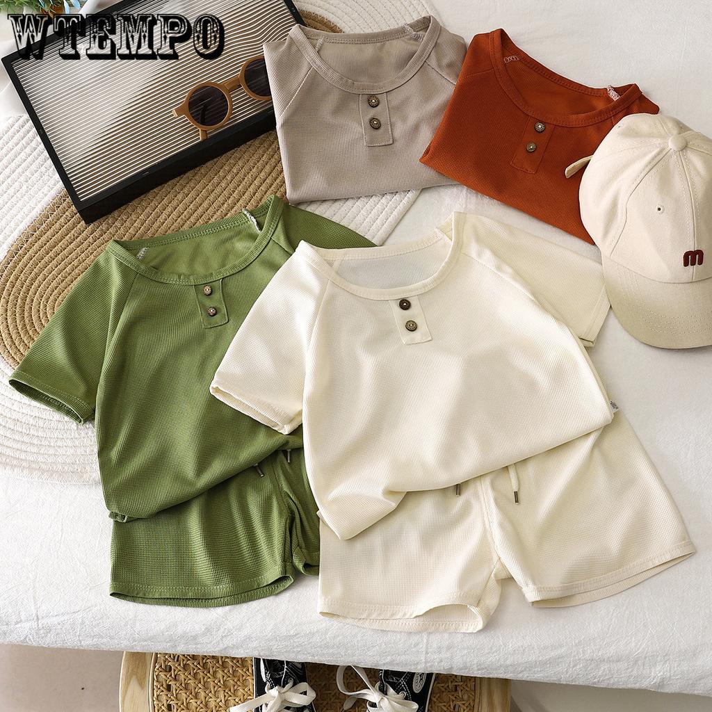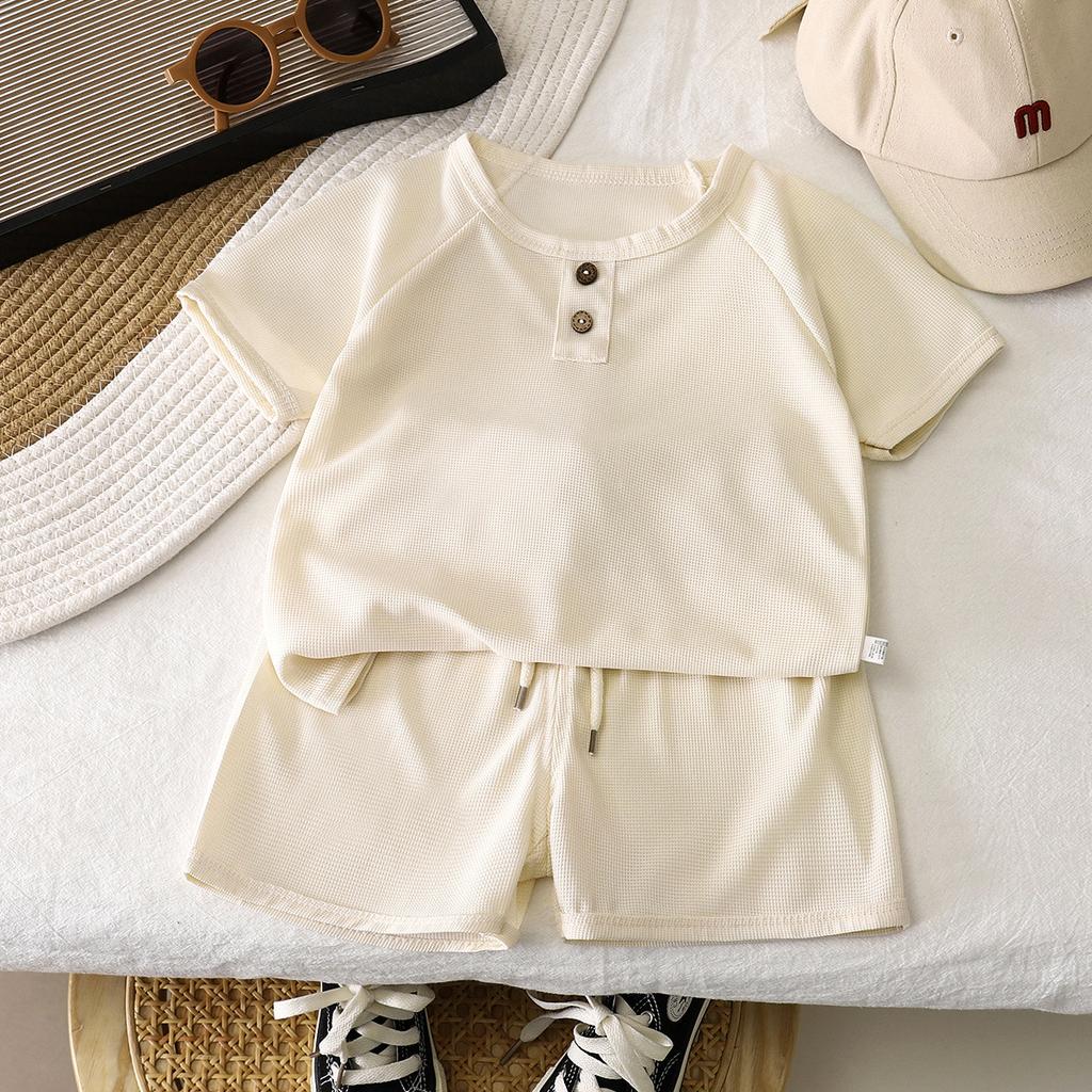 Детский комплект с коротким рукавом Летний комплект для мальчиков Вафельные шорты Повседневный летний комплект-двойка для малышей Детская одежда