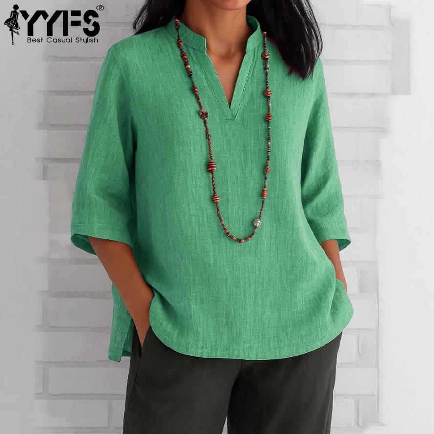 YYFS женские модные повседневные летние весенние однотонные блузки и рубашки с рукавами 1/2 и v-образным вырезом с принтом — купить товар онлайн с бесплатной доставкой по всему миру!