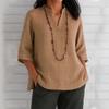 YYFS Женские модные повседневные летние весенние однотонные блузки и рубашки с рукавами 1/2 и v-образным вырезом с принтом